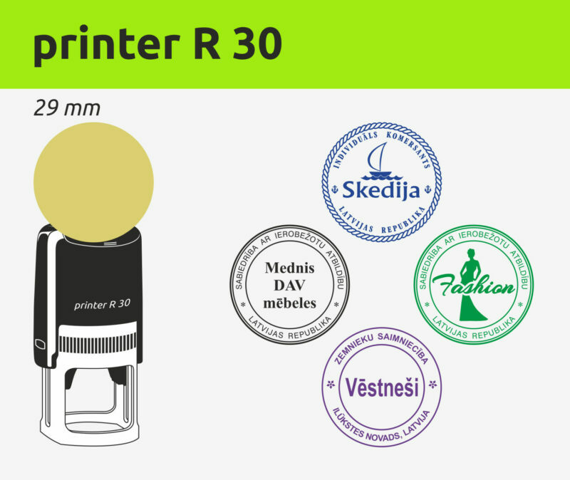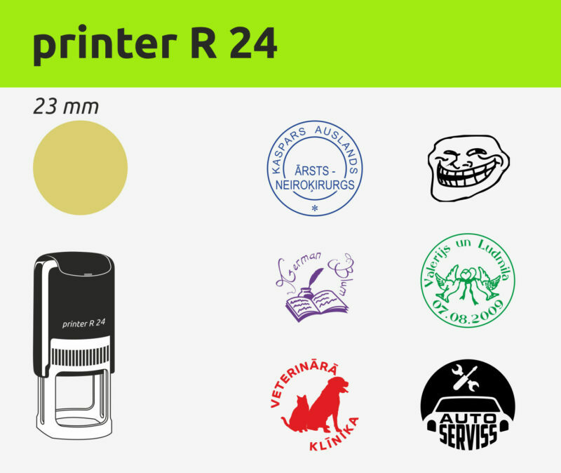 Zemāk ir cenas standarta izmēriem. Ja neatrodat īsto izmēru, rakstiet mums, zīmogu vai spiedogu piemeklēsim Jums individuāli, atbilstoši vajadzīgajam izmēram.