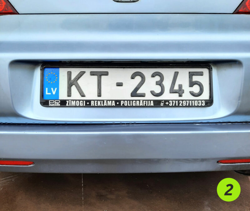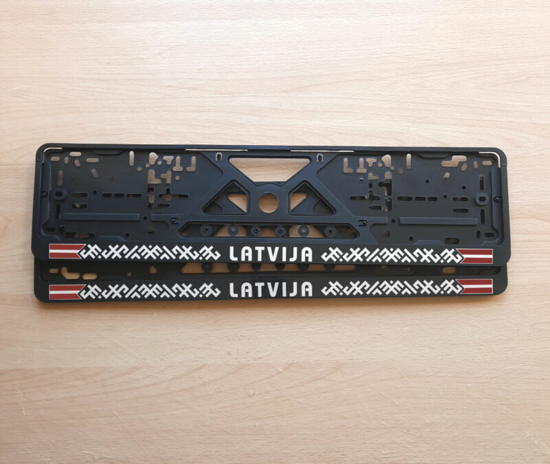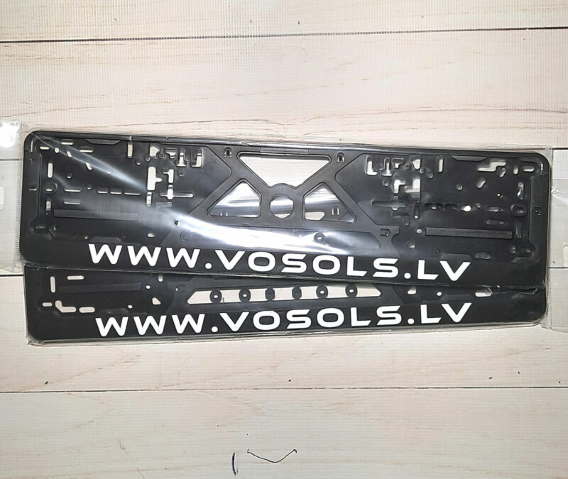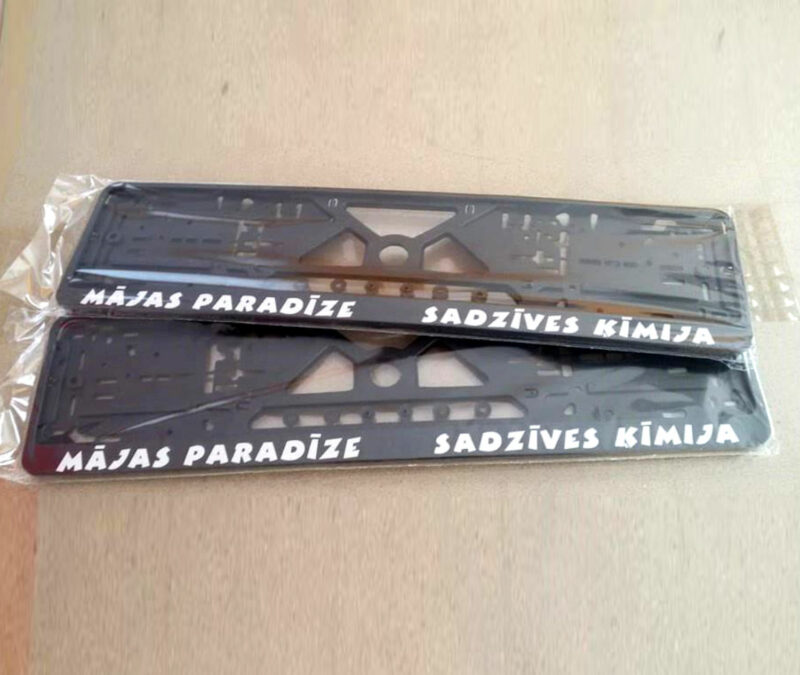 Рамка для номера (держатель номерного знака автомобиля) с надписью или рекламой на заказ от 1 шт. Также – рамка номерного знака для мотоцикла, джипа, мопеда или американская рамка для номера. После изготовления сделаем доставку – Латвия: Рига, Даугавпилс, Резекне, Вентспилс, Лиепая, Елгава; Литва: Вильнюс, Каунас; Эстония: Таллинн, Тарту, Пярну. А также по Европе и миру.