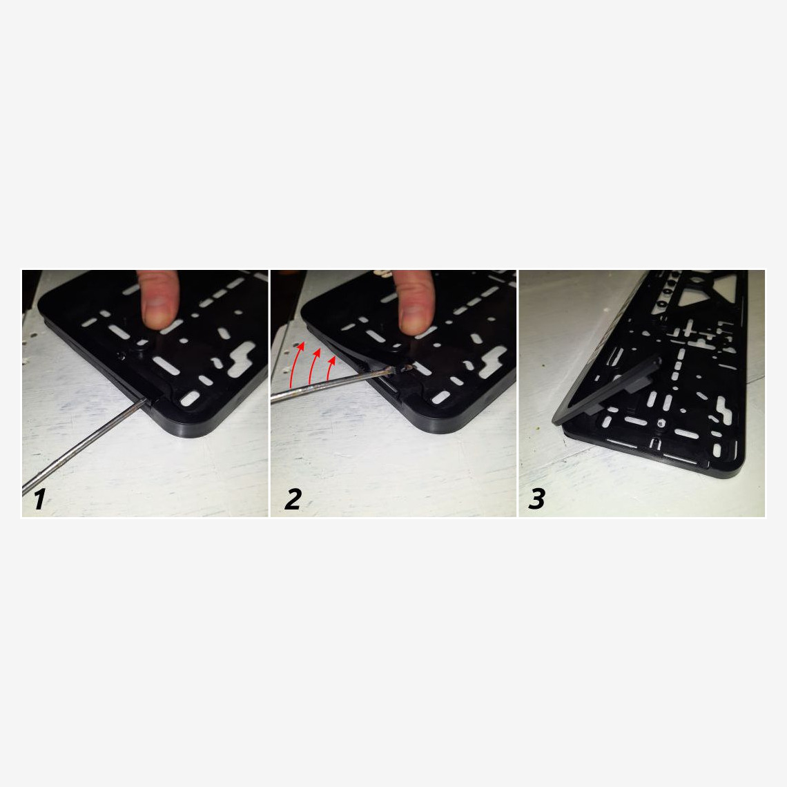 Эти прижимы слегка подпружинены и удерживают номер в нужном положении, исключая его смещение и вибрации даже при движении по неровной дороге.